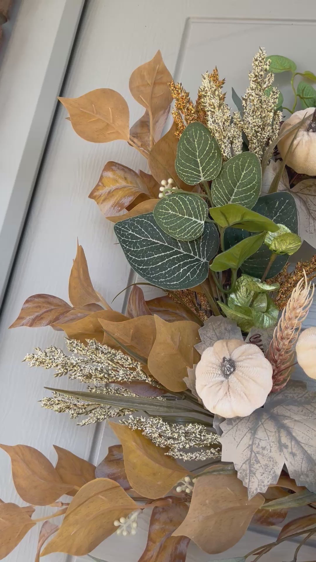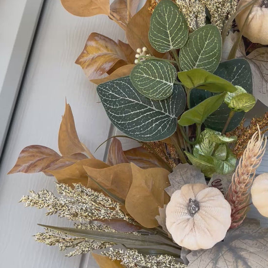 A gorgeous striking Autumn wreath in lovely Autumnal tones. Made on a 30cm grapevine base and sprayed with a UV spray for additional protection.